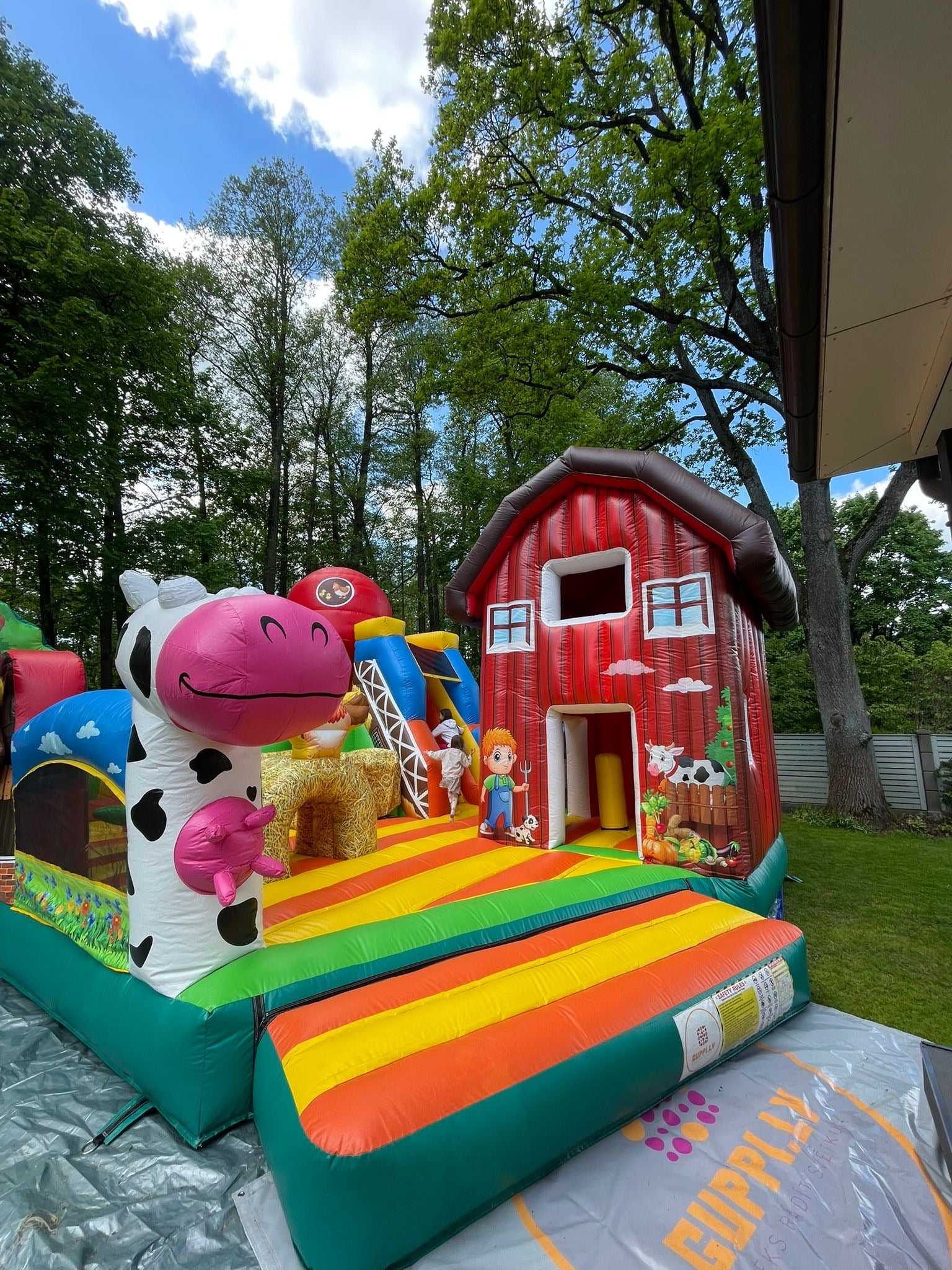 Piepūšamā atrakcija “Lauku sēta” ir piemērota dažāda vecuma bērniem un lieliski iederas dzimšanas dienās, dārza ballītēs un bērnu svētkos.