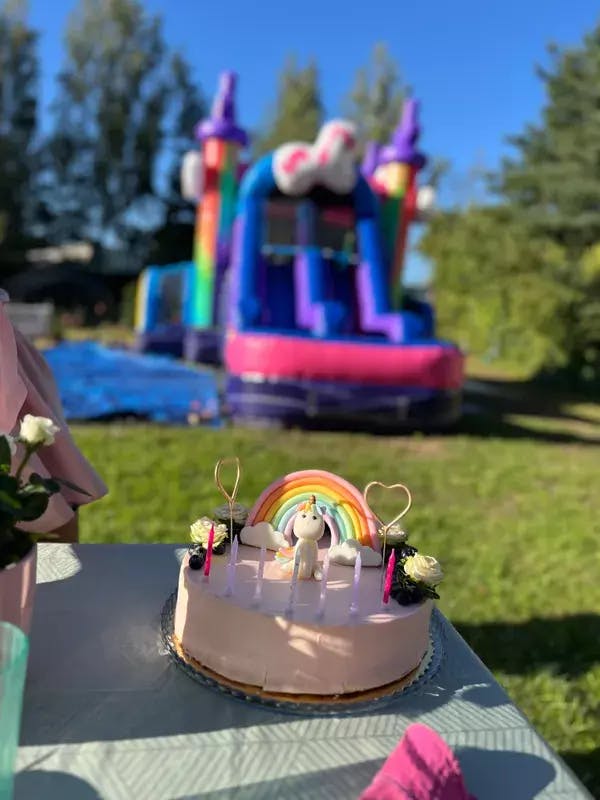 Gatavojieties nebeidzamām smieklu stundām un spēlējieties ar Vienradzi! Šī piepūšamā brīnumzeme ir lieliski piemērota jebkurai princeses ballītei, piedāvājot divus slidkalniņus, pakāpienus un pat batutu nepārtrauktai jautrībai un neaizmirstamām atmiņām.